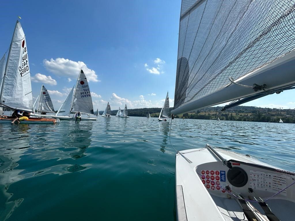 So waren wir den ganzen Samstagnachmittag auf dem Wasser und probierten mehrmals. Leider waren die Bisenschübe jeweils nur von kurzer Dauer und mit mächtigen Drehern versehen, so dass parmal abgeschossen wurde. Ein Lauf, an der Grenze des Erträglichen, war die ganze Ausbeute. Die Führung wechselte mehrmals, einige wurden ganz nach hinten gereicht, während andere einen super Zug erwischten. Schliesslich waren Liechti K./G. Ernst vor Ch. Suri/M. Liechti zuerst im Ziel.